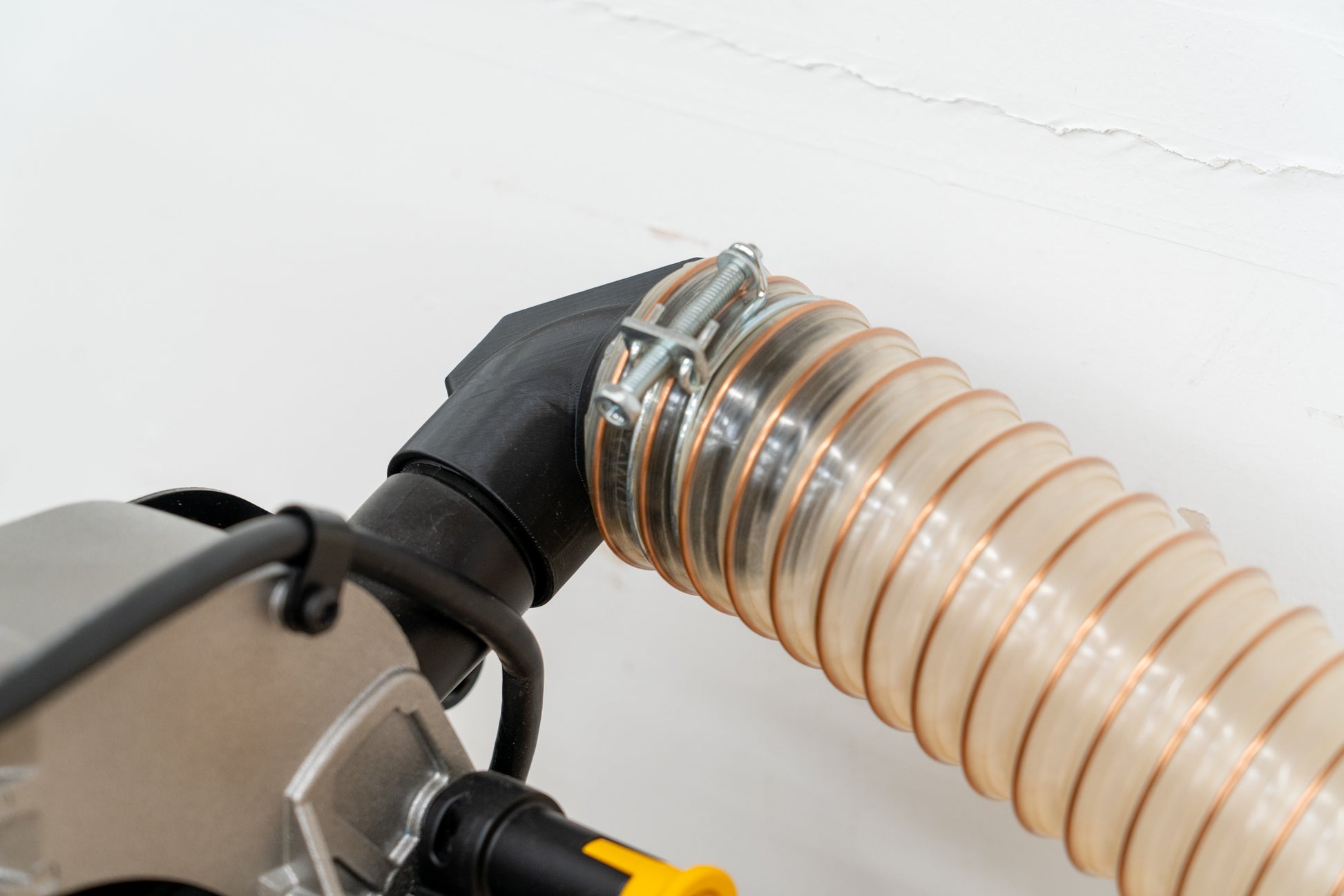 Get your DeWALT miter saw as close to the wall as possible with this ultra compact 90-degree elbow.