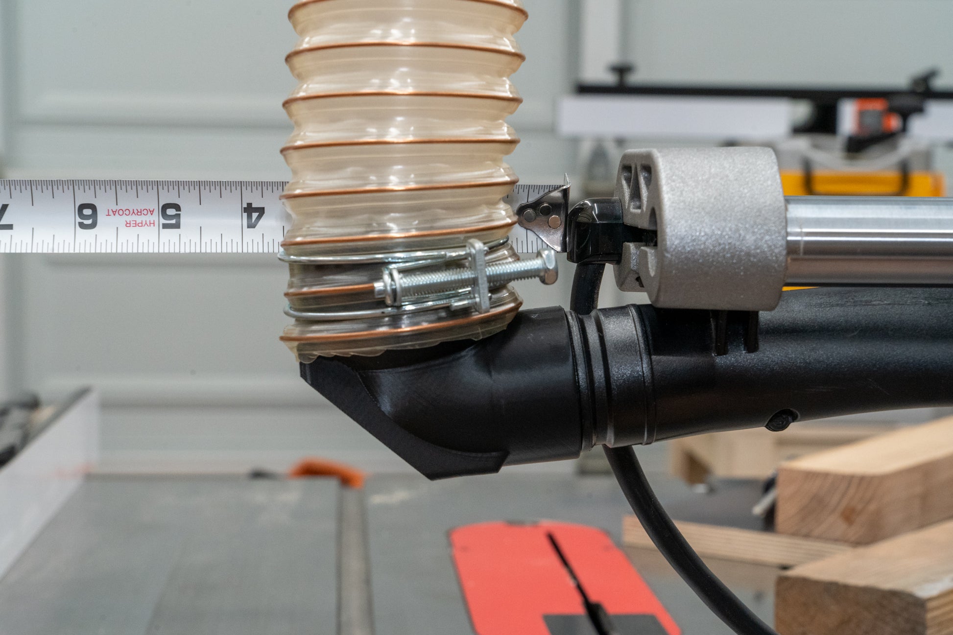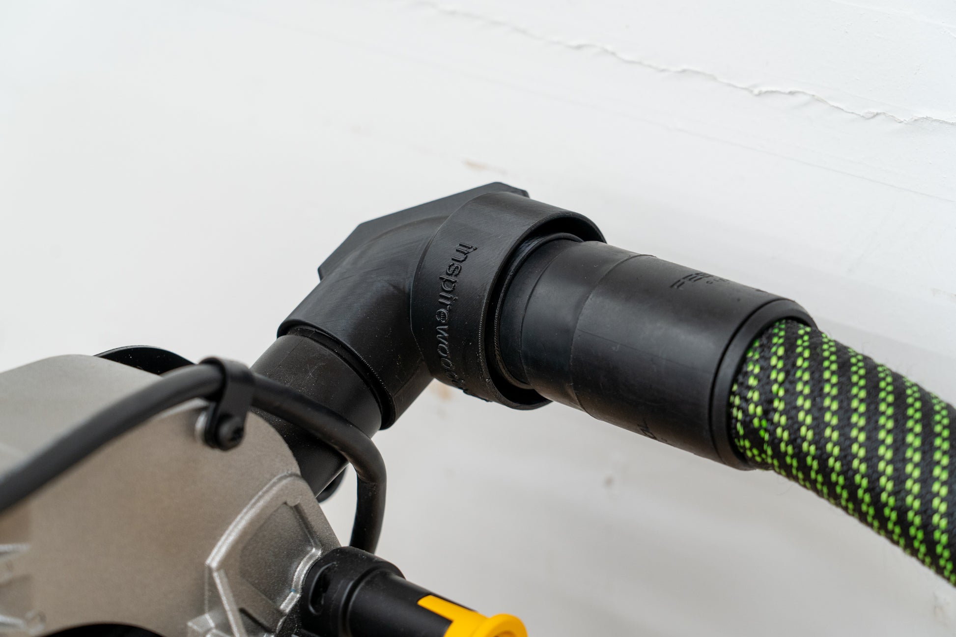 I'd been scouring the market to try and find a good solution to get my Miter Saw closer to the wall in my small shop, and this was PERFECT. The 90 degree elbow piece is sturdy but flexible enough to get a great fit, and I was able to scooch my saw much closer to the wall and it also relieved the pressure on my hoses which was super helpful as well. Jodee is also always super helpful and responsive for any customer service needs - Inspire Woodcraft is the best, thanks again!