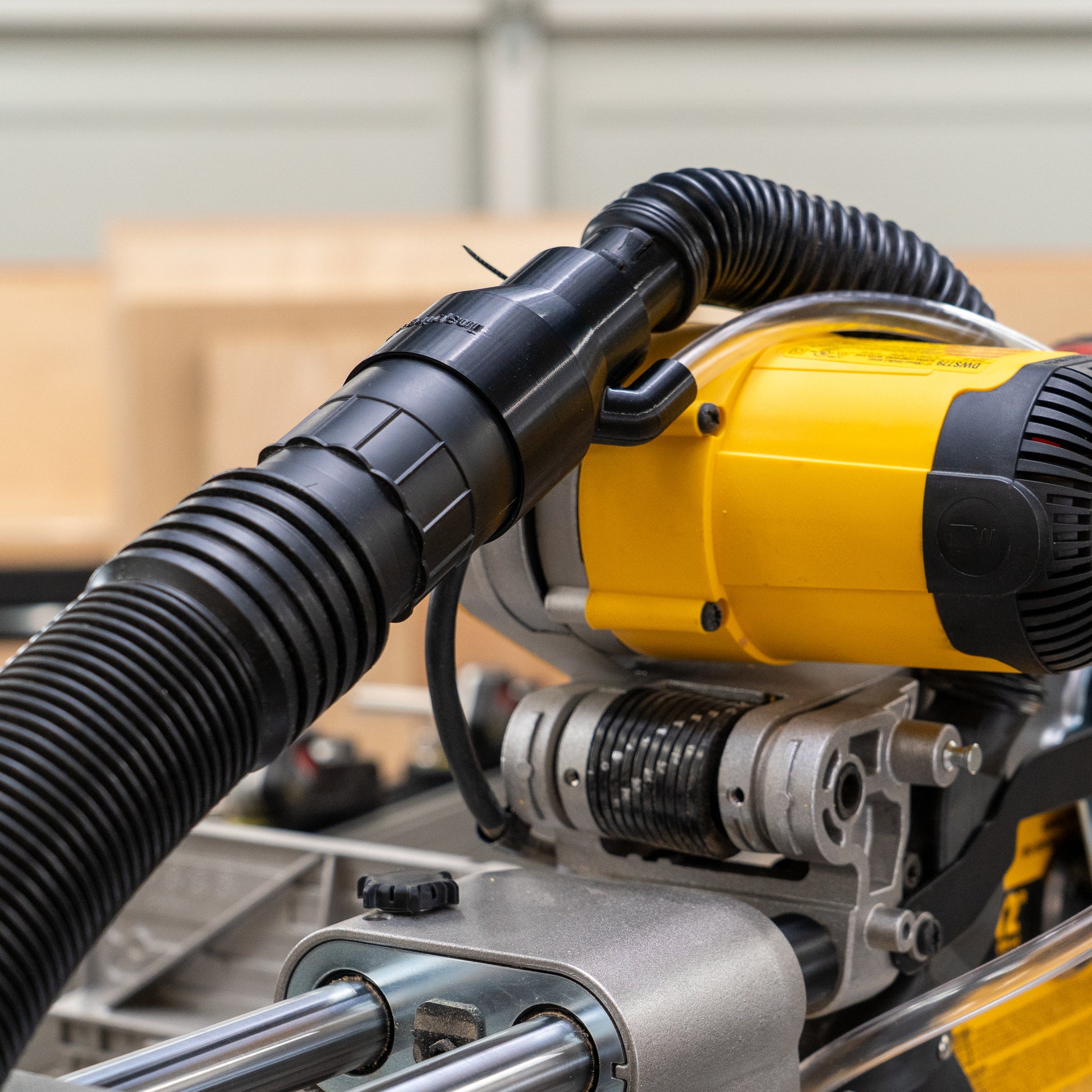 Collect the dust from your miter saw that no other system can. The all-new design of the Gen 2 Dust Collection Throat Plate for the DeWALT DWS779/780 has improved dust collection efficiency, installs quicker, and has a sleek new factory look, all at a significant cost reduction compared to our first-generation throat plates.
